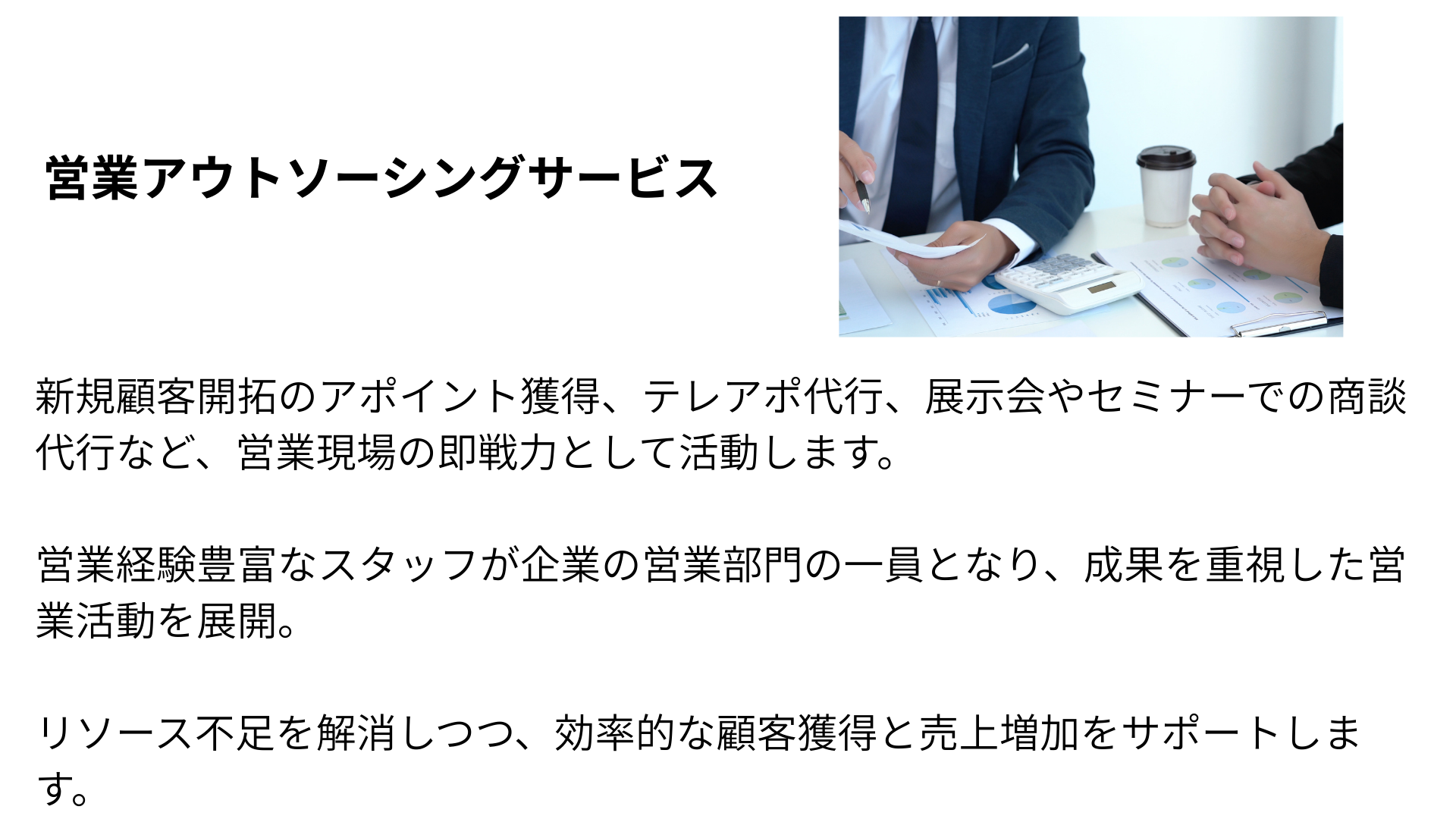 | 営業アウトソーシング | 月額 200,000円〜 |